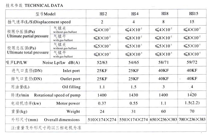 HS系列直联旋片式真空泵HS2、HS4、HS8、HS15型真空泵,它可直接获得10-2Pa的真空,也可作为其他真空泵如分子泵、扩散泵、罗茨泵等的前级泵,广泛应用于制冷、电子、化工、医药、食品及科研所实验室的设备和自动生产线上。设计理念加工更加合理的加工工艺,使各项性能指标都达到了JB/T53017-92一等品标准。