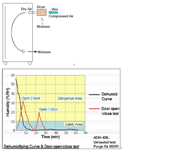 2 上海和呈除湿能力使在开门/关门后,低湿柜内的湿度在很快的时间内回到低湿的水平(10-20mins)