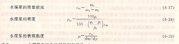 为壁面处剪切应力与壁面处速度变化率的比值,下面是水煤浆质量浓度、密度和表观黏度的定义式。