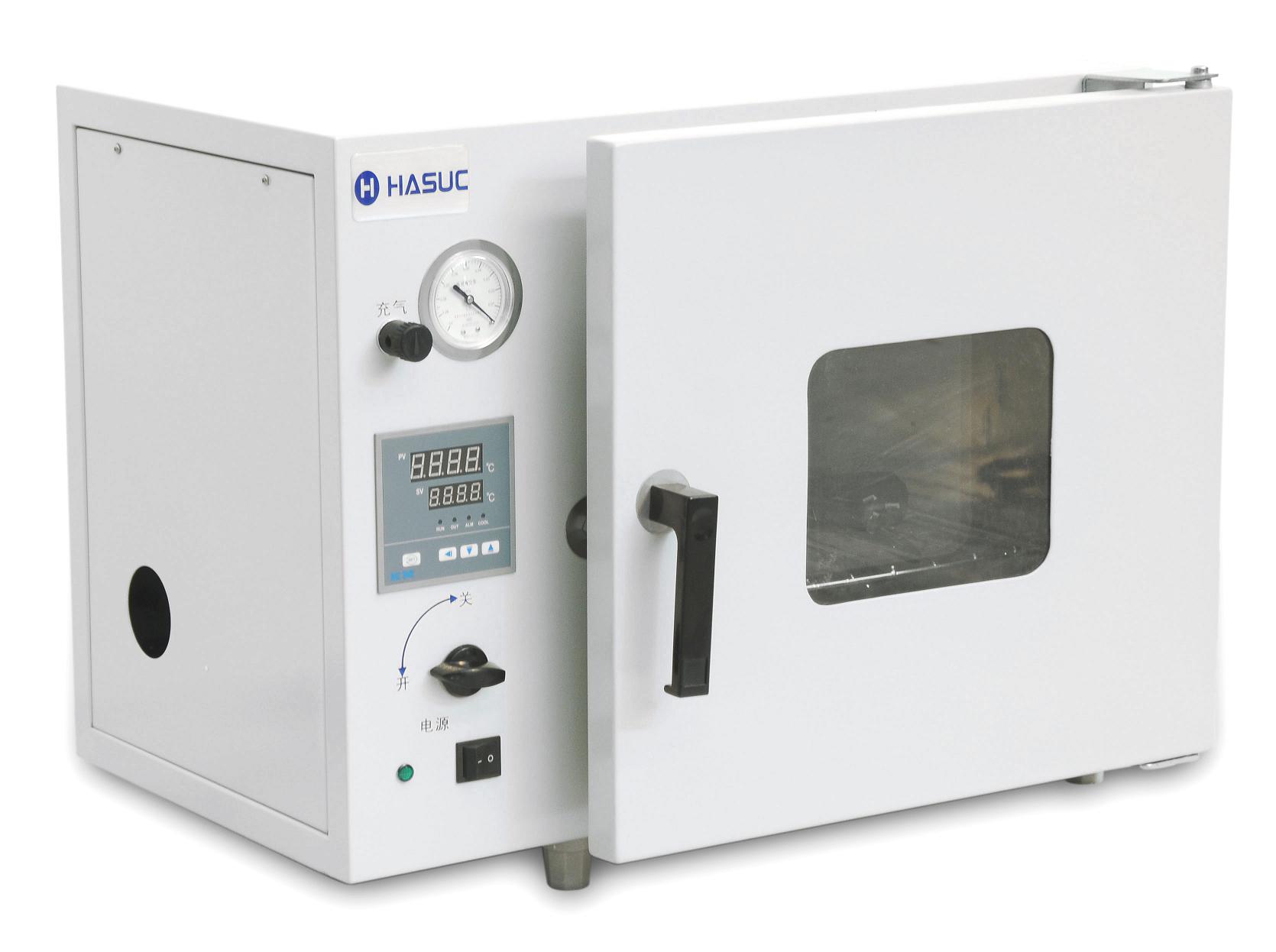 1) 加工件放入真空烘箱里抽真空是为了抽去工件材质中可以抽去的气体成分。如果先加热工件,气体遇热会膨胀。由于烘箱的密封性非常好,膨胀气体所产生的巨大压力有可能使观察窗钢化玻璃爆裂。所以这是一个潜在的危险。按先抽真空再升温加热的程序操作,可以避免这种危险。